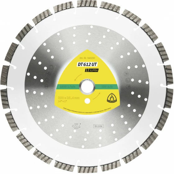 Le disque soudé au laser DT 612 UT Supra avec turbosegments de 12 mm est idéal pour la découpe rapide de béton et de matériaux de construction durs. Le disque professionnel possède une bonne durée de vie sur béton armé et offre un excellent rapport qualité-prix.